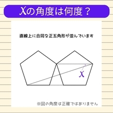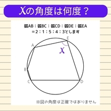 <問題>下図中の角xの角度は何度でしょう?※図に記載されている角度は、実際の角度とは異なります正解は……↓↓↓↓↓↓↓↓↓正解は72°でした!こちらの問題にも挑戦!正解はこちら>>
