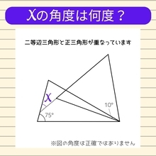 <問題>下図中の角xの角度は何度でしょう?※図に記載されている角度は、実際の角度とは異なります正解は……↓↓↓↓↓↓↓↓↓正解は85°でした!こちらの問題にも挑戦!正解はこちら>>