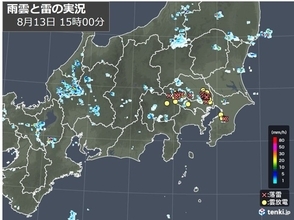 関東北部に雷雲 都内にも雨雲 夜にかけて平野部も急な雨や落雷注意