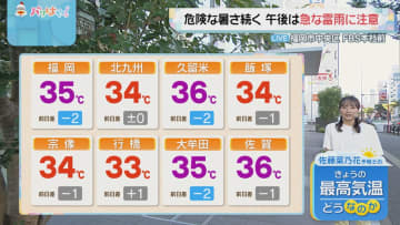 佐藤菜乃花(さとう・なのか)気象予報士のお天気情報です。福岡と佐賀の天気をお伝えします。 「最高気温...