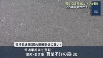 15日夜、愛知県豊田市で乗用車とバイクが衝突し、バイクの男性が死亡しました。警察は乗用車を運転してい...