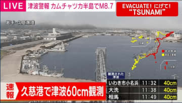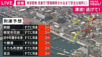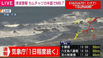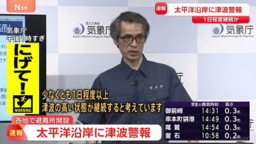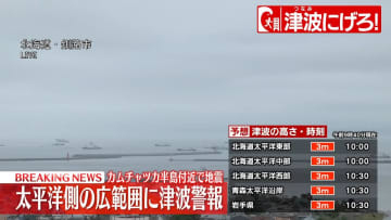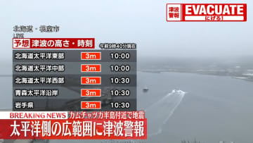 気象庁が青森県東方沖を震源とする最大震度6強の地震(マグニチュード=M7.5)を受け、「北海道・三陸...