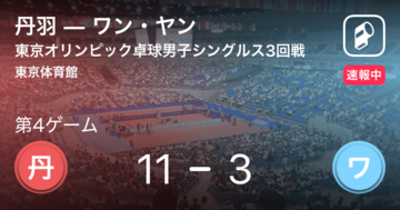 東京体育館で行われている東京オリンピック卓球男子シングルス3回戦の丹羽孝希vsワン・ヤンの試合は、丹羽がワン・ヤン相手に第3ゲームを取ります。勝負は第4ゲームへと続きます。丹羽は連取なるか、はたまたワ...