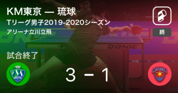 Tリーグ男子2019-2020シーズンは8月31日(土)、アリーナ立川立飛で木下マイスター東京vs琉球アスティーダの試合が行われ、KM東京が3-1で、琉球を降して勝利した。第1ゲームをKM東京2-0琉...