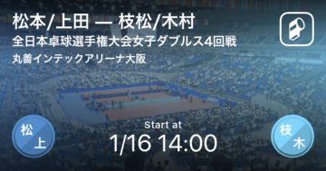 この後1/279:30より、全日本卓球選手権大会女子ダブルス4回戦石川佳純/平野美宇vs前瀧初音/吉田優海の試合が東京体育館にて行われます。