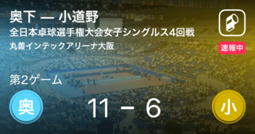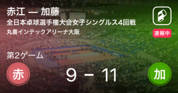 東京体育館で行われている全日本卓球選手権大会女子シングルス4回戦の佐藤瞳vs青井さくらの試合は、佐藤が青井相手に第1ゲームを取ります。勝負は第2ゲームへと続きます。佐藤は連取なるか、はたまた青井が奪い...