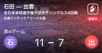 東京体育館で行われている全日本卓球選手権大会女子シングルス4回戦の佐藤瞳vs青井さくらの試合は、佐藤が青井相手に第4ゲームを取ります。勝負は第5ゲームへと続きます。佐藤は連取なるか、はたまた青井が奪い...