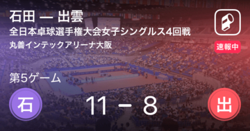 東京体育館で行われている全日本卓球選手権大会女子シングルス4回戦の木原美悠vs永尾尭子の試合は、永尾が木原相手に第4ゲームを取ります。勝負は第5ゲームへと続きます。永尾は連取なるか、はたまた木原が奪い...