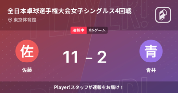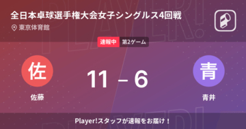 【全日本卓球選手権大会女子シングルス2回戦】竹前が関口を破る