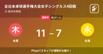 全日本卓球女子シングルス1回戦は1月15日(火)、大阪市中央体育館で緒方詩央里vs久田智世那の試合が行われ、緒方が3-0で、久田を降して勝利した。第1ゲームを緒方11-9久田第2ゲームを緒方11-9久...
