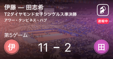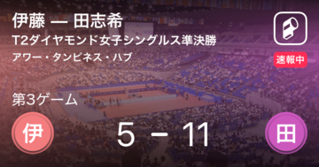 【速報中】伊藤vs田志希は、田志希が第2ゲームを取る。アワー・タンピネス・ハブで行われているT2ダイヤモンド女子シングルス準決勝の伊藤美誠vs田志希の試合は、田志希が伊藤相手に第2ゲームを取ります。勝負は第3ゲームへと続きます。田志希は連取なるか、はたま...