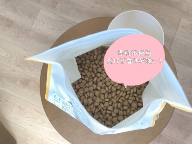 ただ、香料は不使用なので安心してあげられますし、開封後に香りが飛んでしまって食いつきが悪くなることもあるので、偏食や好き嫌いの多い子はこれくらい香りが強い方が良いのかもしれません。
