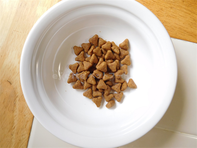 餌入れに入れてみました。三角形のフードってやっぱり珍しいのではないでしょうか。